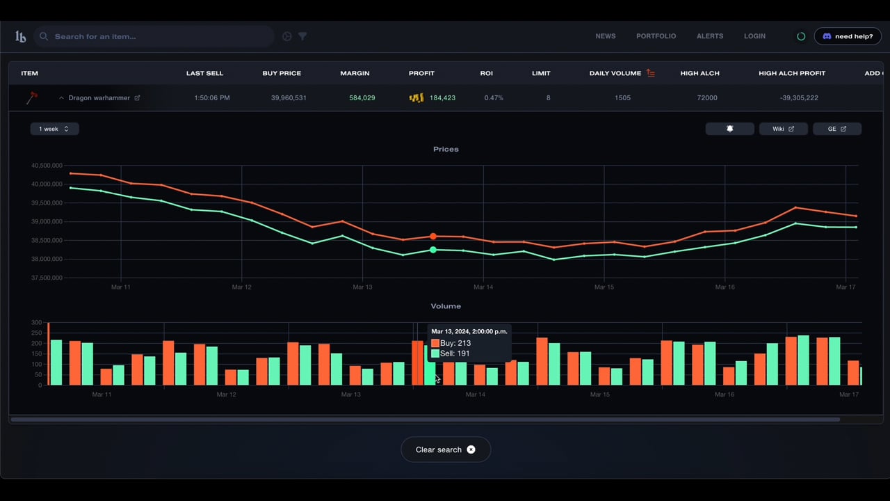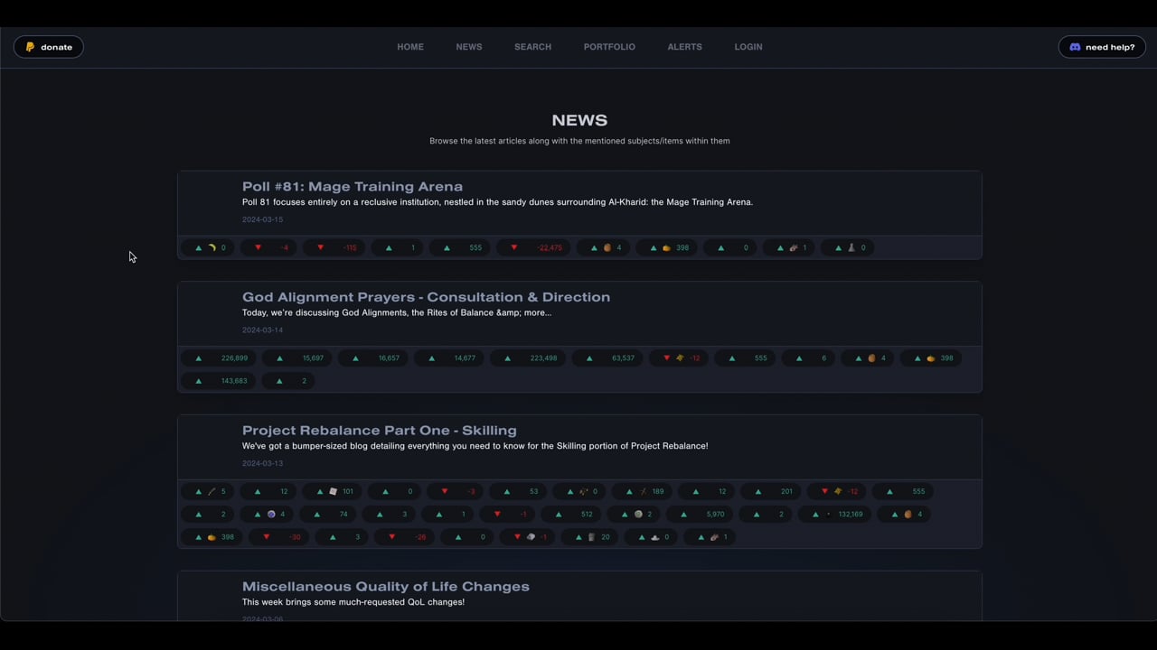 Lootbag provides Runescape players with a versatile platform enabling real-time price monitoring. This empowers players to gain valuable insights for making strategic trades, optimizing their in-game investments. It's a common strategy for players to purchase items at low prices and sell them at their peak to maximize profits. Lootbag facilitates this by setting up alerts to notify players of price fluctuations. Additionally, it offers a convenient feature where it scans recent game updates, highlighting mentioned items, thus saving users time while keeping them informed about price changes.